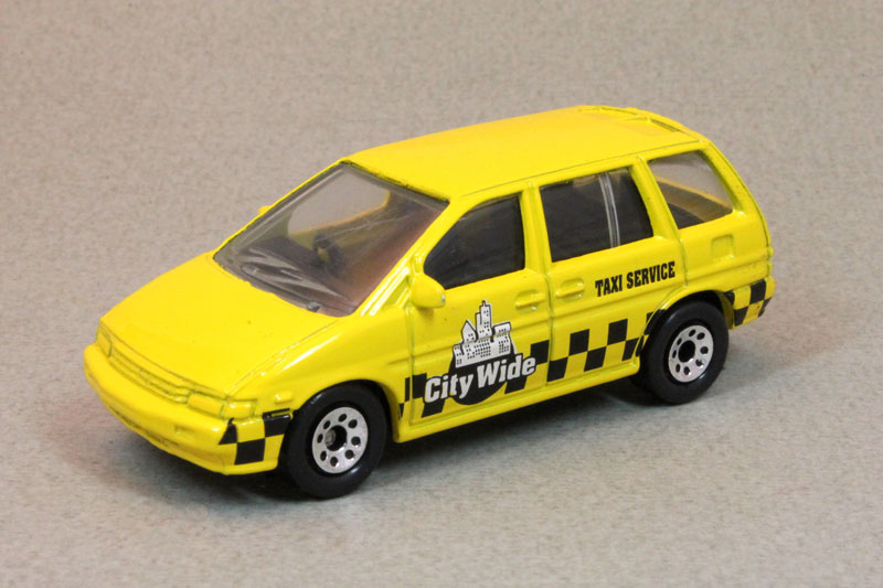 Design & Text: Black checkers, white city emblem, City Wide Taxi Service