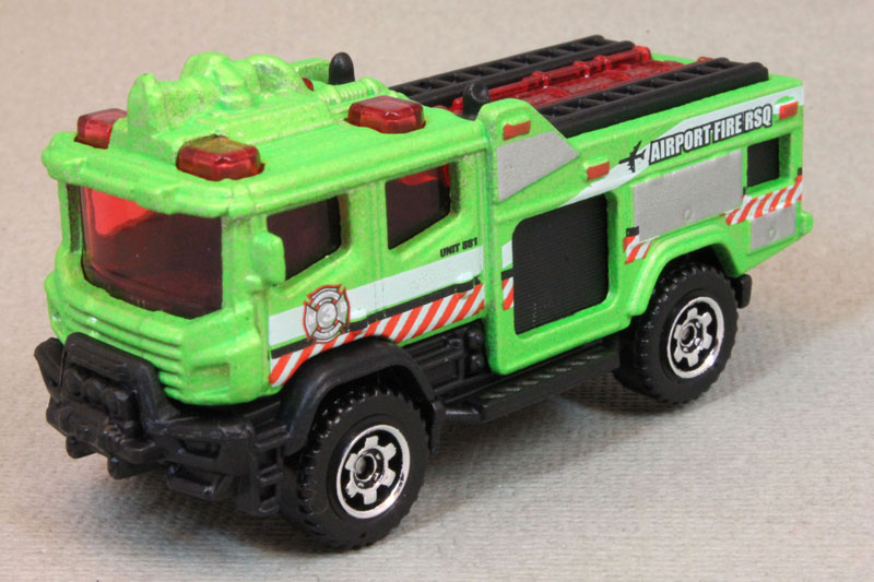Design & Text: White/black/red stripes, grey panels, Airport Fire RSQ / Unit 881