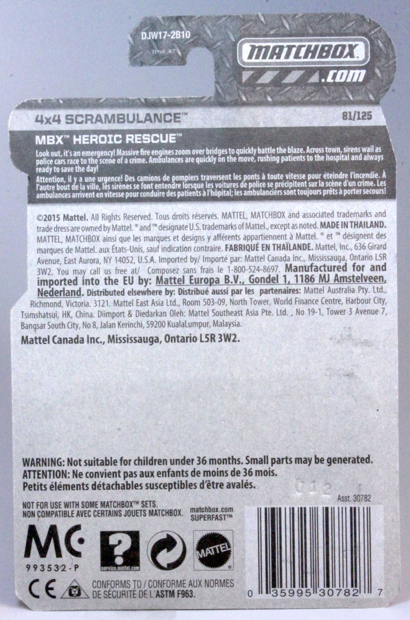 Model Name on the Pkg: 4x4 Scrambulance